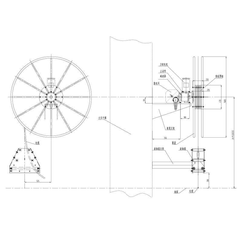 The cable reel is composed of a torque motor, reducer, collector ring, turntable, guide wheel, etc. When the mobile machinery needs to move in the direction of the power supply, the torque motor is started. After being reduced by the reducer, the torque is transmitted to the reel through the turntable and flange on the output shaft of the reducer. The reel rotates slowly and the cable is wound into the turntable (rewinding). When the tower crane and other machinery need to be far away from the power supply, the cable is dragged out of the disc (unwinding) by overcoming the frictional torque inside the reducer and pulling the disc to rotate. The collector ring is used for transmitting power to mobile mechanical equipment and is installed at the other end of the output shaft of the reducer. Connect the neutral wire connection plate and solid wire connection plate on the inner ring of the collector ring to the cable from the power supply; Connect the host cable to the foreign conductive board. When the drum rotates, due to the synchronous rotation of the inner ring of the collector ring and the spool, the current is transmitted through the slip ring and the electric ring, and the power cable will not be twisted due to the rotation of the drum.