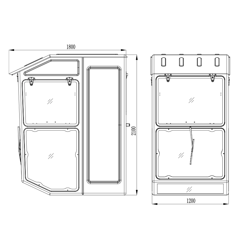 - Fixed front lower and rear windows on the left and right